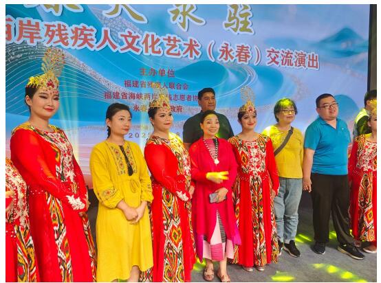 新疆昌吉州残联理事长阿力木在演出间隙,与台湾代表团团长陈习珍一行同游永春山水。一行人漫步于永春的青绿景致中,畅谈两岸文化特色与助残心得,欢声笑语不断,还频频驻足合照,定格下两岸同胞相知相近的美好瞬间。阿力木理事长当场诚挚发出邀请:"新疆有独特的民族音乐与人文风情,盼陈习珍老师能带团前来交流,让两岸残疾人艺术家共奏民族团结与文化融合的乐章。"